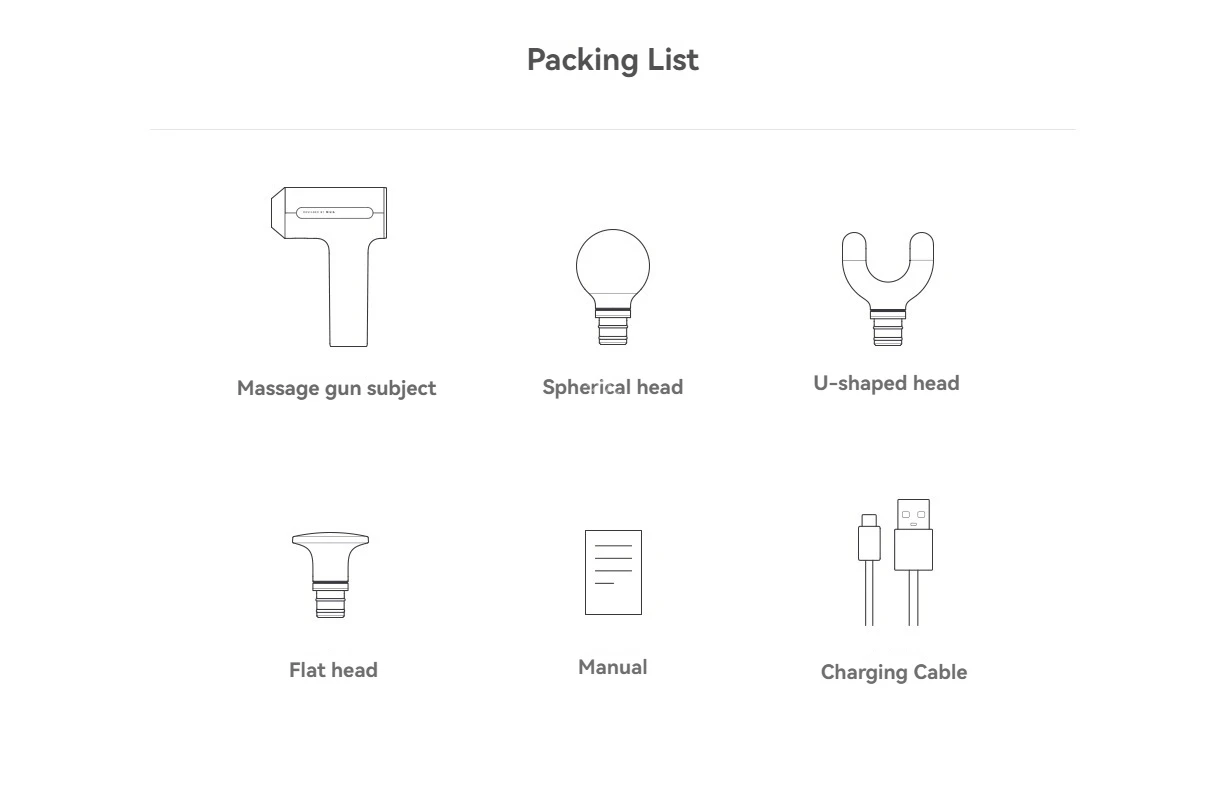 3. It is worth mentioning that this product is equipped with a force feedback light ring design. This light ring can prompt the size of the massage force according to the user's pressing force changes, helping users avoid injuries caused by ineffective or excessive massage. In addition, the product is also equipped with a variety of massage heads such as flat head, spherical head, U-shaped head, etc. to meet the massage needs of different parts.